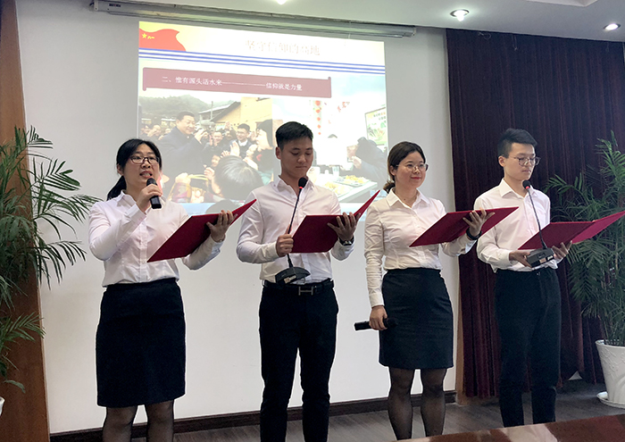 活动最后,公司党委副书记、工会主席、副总经理姜启生同志带领全体人员朗诵了《习近平在纪念马克思诞辰200周年大会上的讲话》节选,将整个活动推向了高潮。朗诵声铿锵有力、充满激情,更加坚定了公司全体职工“不忘初心、牢记使命”的坚强信念。