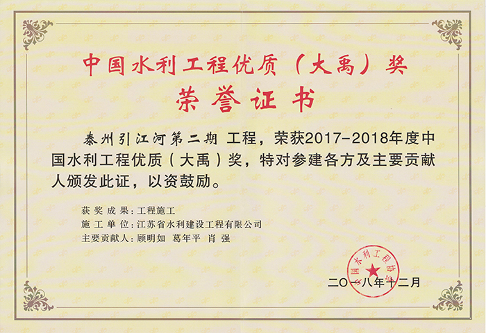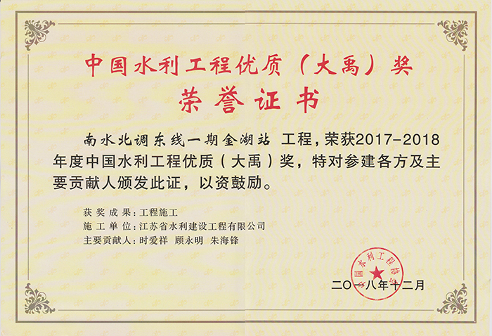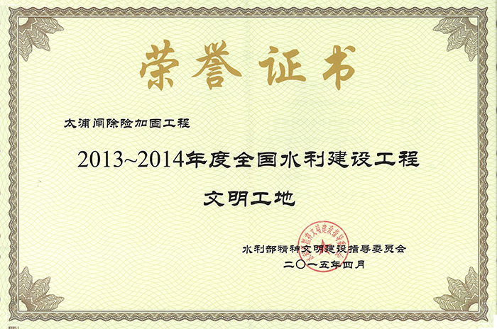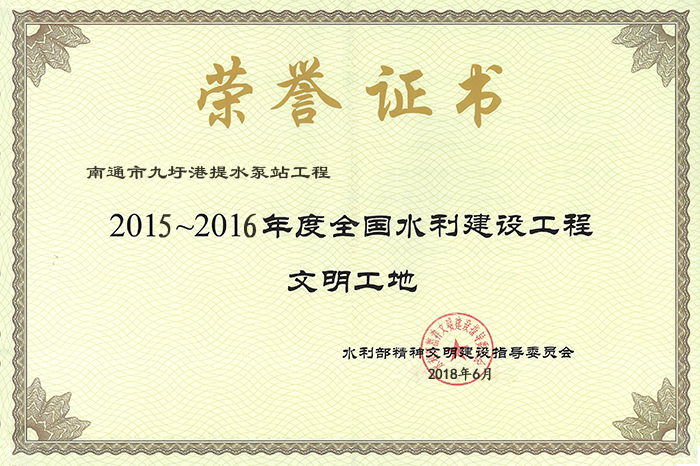 公司连续多年被评为全国水利建设先进集体、全国优秀水利企业、全国安全生产和质量管理先进单位、江苏省文明单位、建筑业百强企业,荣获江苏省“五一劳动奖章”。