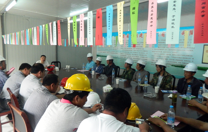 2013614上午,总经理夏国春、工会主席姜启生、纪委书记黄祥圣等公司安委会成员来到机械化分公司入江水道运河西堤六标项目部,开展安全宣传周活动。活动现场,机械化分公司经理吴宝华、项目经理韩爱东分别介绍了分公司及项目部开展安全生产月活动情况。工会主席姜启生要求项目部切实有效地开展安全月活动,加强劳动保护,落实好防暑降温和高温安全生产措施。夏国春总经理传达了习近平总书记66对安全生产工作的重要指示,67国务院召开的全国安全生产电视电话会议精神,传达了近期省、市安全生产会议精神,通报了安全生产形势。夏国春对加强公司安全生产工作、全面开展安全生产大检查、抓好在手工程建设、广泛深入开展安全生产月活动提出了具体要求。他要求公司上下要时刻崩紧安全生产这根弦,做到安全检查全覆盖、隐患治理不留情;公司各分公司、各个生产项目部要在思想上高度重视,措施严格落实,加强夏季高温作业安全、防汛防台生产安全,全面细致、深入有效地抓好安全生产工作。会后,公司安委会成员沿着运河大堤,步行5公里,仔细检查了施工现场。
