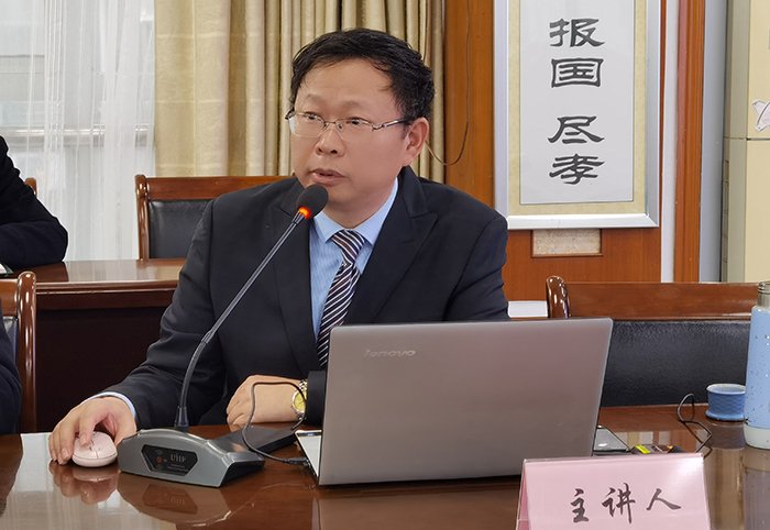 活动邀请了扬州职业大学马克思主义学院书记、副教授曹佳生授课,曹佳生以《两在两同 百年决议》为主题,通过内容丰富的PPT演示,结合水利行业实际现状,系统地带领大家学习了十九届六中全会精神,深入浅出地阐述了十四次党代会精神。
