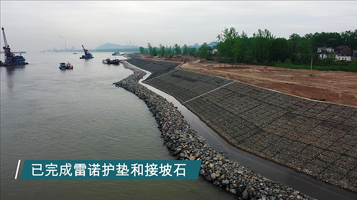 长江马鞍山河段二期整治工程是国家172项节水供水重大水利工程项目之一,我公司承建的四标段项目主要工程量包括土方开挖7.5万立方,混凝土6600立方,散抛块石22.5万立方,赛克格宾1.7万立方,雷诺护垫4.4万平方,铰链排7.2万平方,放养鱼苗1080万尾。工程计划于202091日开工,历经两个枯水期,至20211130日完工。前期因受征地及区域内船舶迁移影响,至12月中旬陆续进入施工后,项目部加大资金、人员、机械设备投入,紧抓关键线路,编制了详细、周密的生产计划,层层分解落实节点目标责任,全力推进工程进展。工程于202172日全部完工,722日通过工程完工验收。