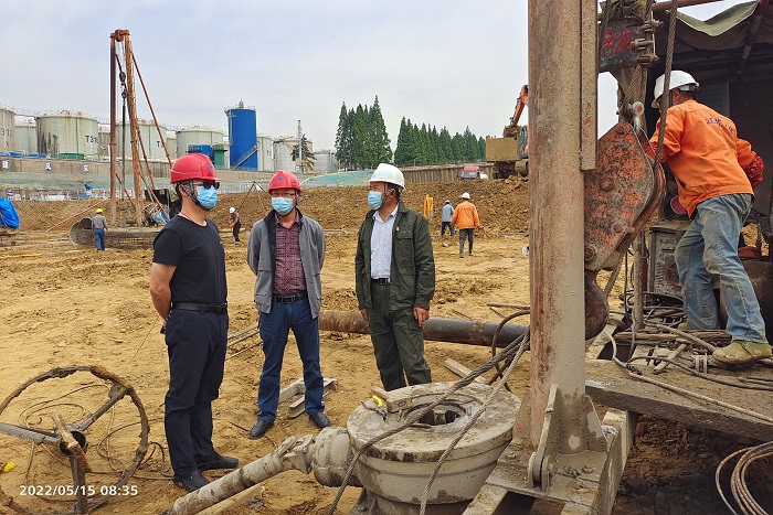新桃花港枢纽工程受疫情封控政策影响,水泥和混凝土供应中断,正在施工的围堰截渗和基坑围封以及灌注桩施工被迫停工。经项目部多方了解,江阴仅剩一家月城镇金峰水泥厂可以在疫情期间继续生产,但水泥供到工地,需途径月城、南闸、澄江、夏港、申港、利港六个镇,在疫情管控政策下,镇与镇之间是无法正常通行的。解决供货厂家汽车上路通行是一个非常棘手的问题,杨斌多次到市水利局和属地镇政府汇报,在水利局的大力支持下,最终取得沿途乡镇的理解和支持,水泥于5月11日到工,围堰截渗和基坑围封得以继续施工。5月13日,混凝土也由申港街道星南混凝土公司直供到工地,灌注桩等也相继恢复施工。