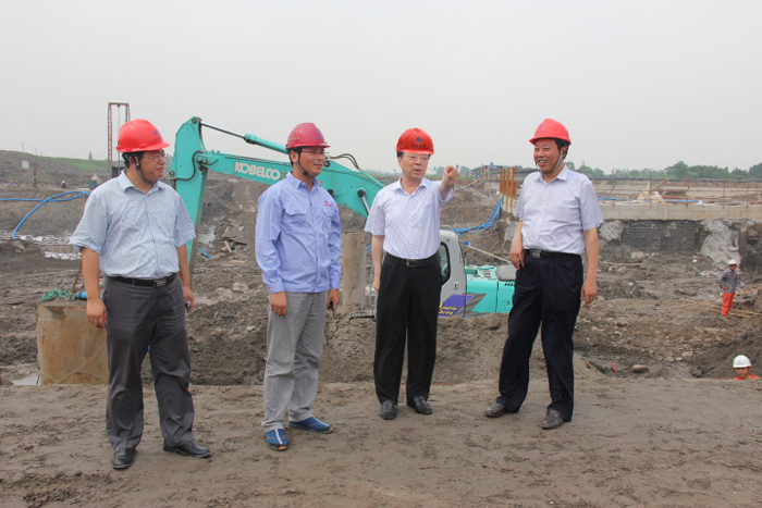 7月7日下午,省人大常委会秘书长吕振霖来到我公司承建的泰州引江河二期工程二线船闸施工现场视察指导工作。省泰州引江河管理处主任张加雪、我公司副总经理、二线船闸项目经理顾明如等陪同。