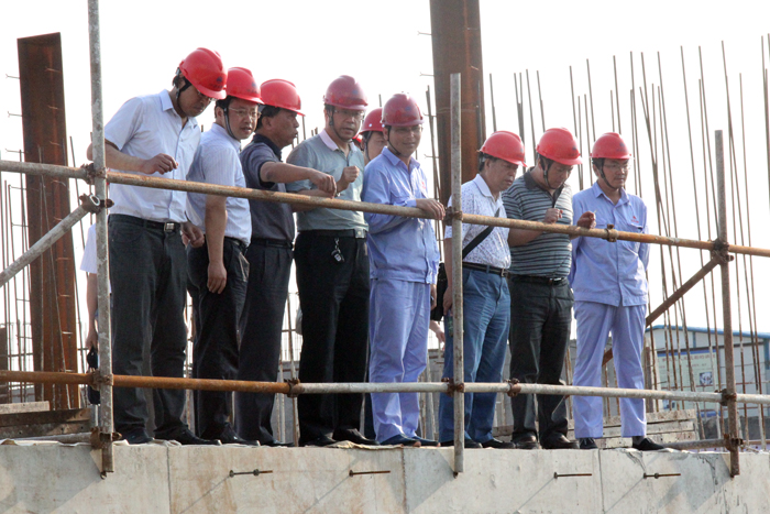 审查会上,专家组听取了工程建设管理情况以及二线船闸工程闸首深基坑开挖、大体积混凝土浇筑两个专项方案的汇报,察看了工程施工现场,对两个专项施工方案进行了认真讨论,对闸首深基坑开挖中的降水效果、观测井布设以及深基坑开挖方式等提出了具体的要求。叶健总工对泰州引江河第二期工程前一阶段的工作表示肯定,同时要求参建各方要充分认识二线船闸施工的艰巨性,针对工程的复杂性和施工季节的不利性,进一步细化和研究现有方案,进一步深入分析观测结果要,做好各项应急措施和预案。审查会要求参建单位按照专家组的意见和建议,抓紧完善专项方案,尽早组织实施。
