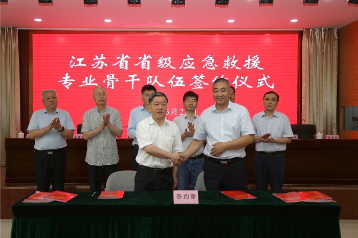 6月23日,江苏省省级应急救援专业骨干队伍签约仪式在省防汛抢险训练中心举行,省应急管理厅副厅长盛方龙代表省应急管理厅与25支专业骨干队伍签订了合作框架协议,公司副总经理顾永明参加签约仪式。