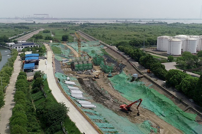 老桃花港整治工程江边枢纽土建施工及设备安装项目由常州分公司承建,自今年4月17日开工至今,项目克服疫情反复、地方矛盾、高温天气等影响因素,在确保质量和安全的前提下,合理安排工期,加大人员和设备投入,确保工期有序推进。截止目前,项目已完成临设搭建,搅拌桩施打,泵站底板浇筑,节制闸XA、XB翼墙墙身浇筑,进水流道浇筑。