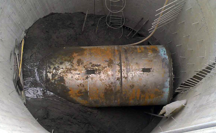 20137151950分,伴随着电机的轰鸣声和刀盘的旋转,我公司的GDDT-1650泥水平衡顶管机缓缓驶入接收井洞口内,并于当日晚间全部出洞,标志着扬州水厂穿太平路顶管工程全线贯通。