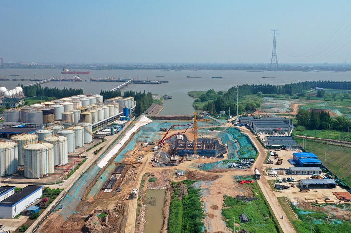 新桃花港是江阴西部地区主要的通江河道,承担片区防洪、排涝、引溉、航运等各项任务。新桃花港江边枢纽工程建成后将进一步提升圩区防洪排涝能力,改善河网水质,提升周边居民生活环境质量。目前,该工程已进入主体施工阶段。江苏水建将持续拓展智慧工地应用,全方位保证施工安全,提高工程项目品质,推动项目实现精细化、信息化、标准化管理。