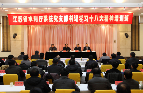 为深入学习贯彻党的十八大精神,进一步提高厅系统党建工作科学化水平,12月17日至18日,省水利厅在省江都管理处举办厅系统党支部书记学习十八大精神培训班。厅党组成员、人事处处长韩全林出席培训班并讲话。厅系统各基层单位的116名党支部书记参加学习培训。