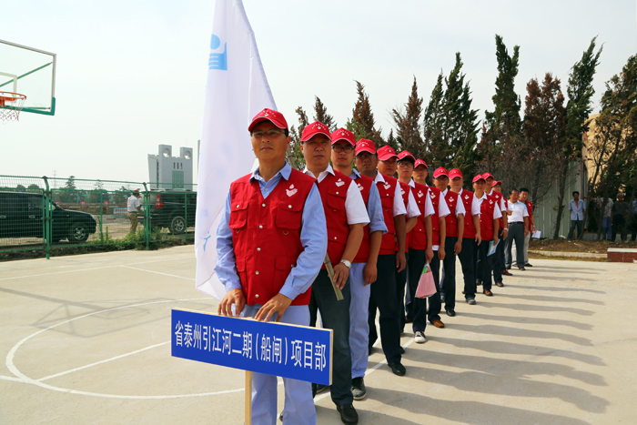 慰问活动开始前,由省泰州引江河管理处牵头组织的保护引江河志愿者服务活动在我公司二线船闸项目部广场召开了动员大会。我公司党委副书记、工会主席姜启生、副总经理、引江河二线船闸工程项目经理顾明如带领项目部志愿者参加会议,并持续在一线工地开展志愿服务活动。
