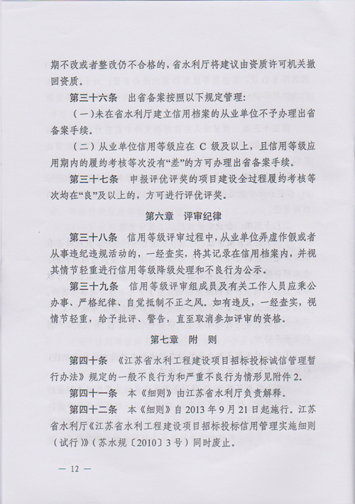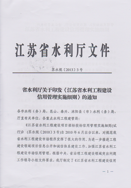 日,省水利厅发布了《江苏省水利工程建设信用管理实施细则》(苏水规