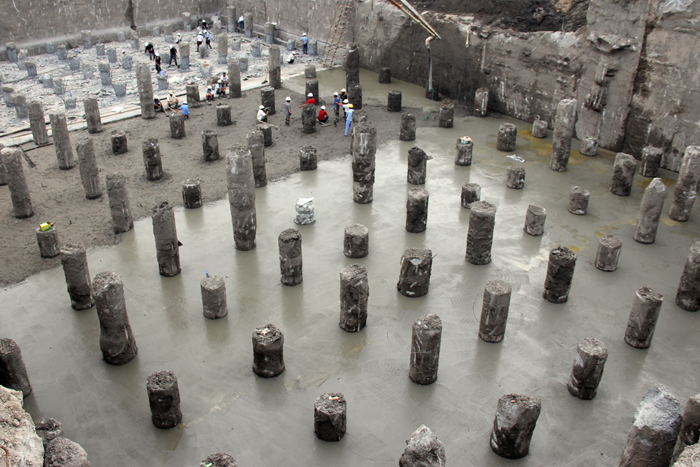 78,建设局组织了上闸首施工和深井降水方案专家审查会。省厅泰州引江河第二期工程建设专家组的专家们对深基坑开挖对一线船闸的影响、深井降水的效果作了深入、细致地分析,提出了相应的对策和预案。项目部迅速落实专家意见,采取了加强一线船闸的观测、施打测压管、基坑土方分层开挖等技术措施。在开挖的最关键时刻,项目部会同建设各方,及时准确的判别出测压管所测地下水位的假象,采用最原始的“探坑”的方式,局部迅速深挖至封底高程,掌握了地下水位的真实情况,有的放矢地展开基坑大规模开挖。71215日,验槽专家“穿着布鞋”仔细察看了基坑最深处的土质情况,现场土不渗水鞋不湿,基坑开挖取得了成功,封底得以顺利进行。