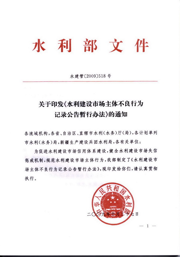 水利建设市场主体不良行为记录公告暂行办法