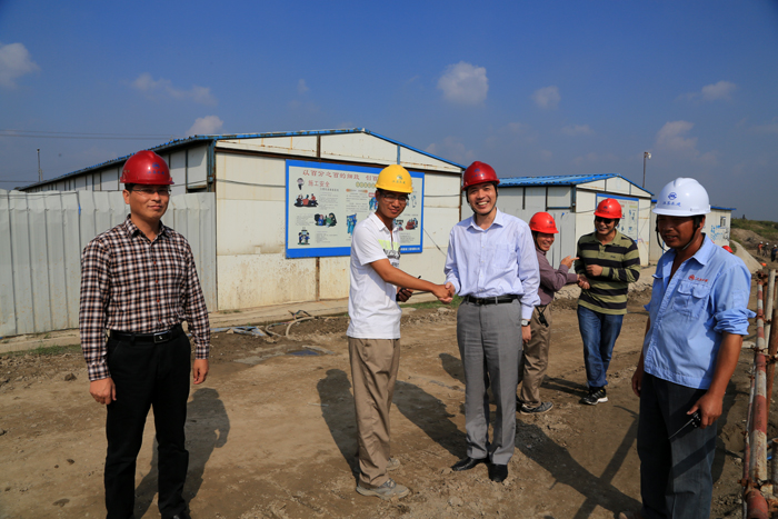 10月1日上午,朱学林董事长来到繁忙的引江河二线船闸工地,看望节日坚守岗位的一线施工人员。节日期间,引江河广大建设者加班加点,顺利完成了下闸首基坑封底,为快速推进工程施工进展打下了坚实的基础。