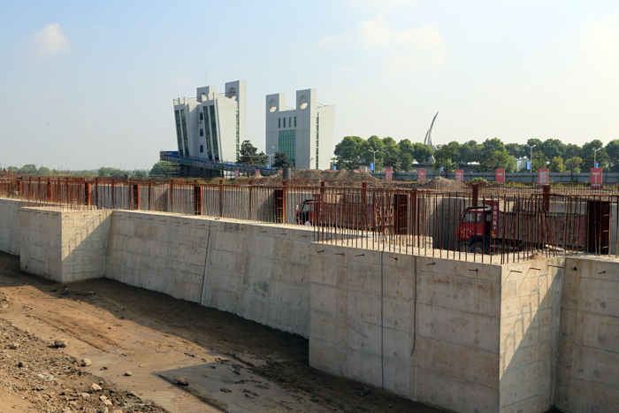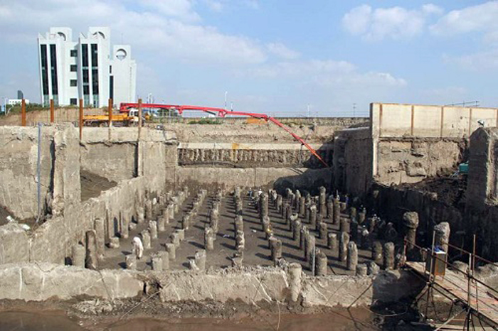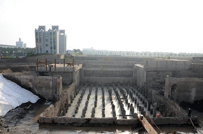 节日期间,引江河工地的广大建设者们保持着高效、积极的工作态势,在全战线全面施工的同时,重点抓好二线船闸下闸首基坑的施工。10月5日下午,通过了对下闸首基坑的验槽。当日15时58分,下闸首封底工作正式展开,至晚上8时28分浇筑工作结束。本次封底长53.8米、宽30米、厚0.2米,浇筑混凝土324方。封底的顺利浇筑,标志着引江河二线船闸主体工程深基坑开挖作业取得阶段性进展,为船闸下闸首底板施工创造了有利条件。封底完成后的第二日,淮河以南地区迎来了“菲特”台风带来的暴雨。由于抢在台风到来之前完成了混凝土浇筑,这样把风雨带来的影响降到最小,也确保了节点目标的实现。