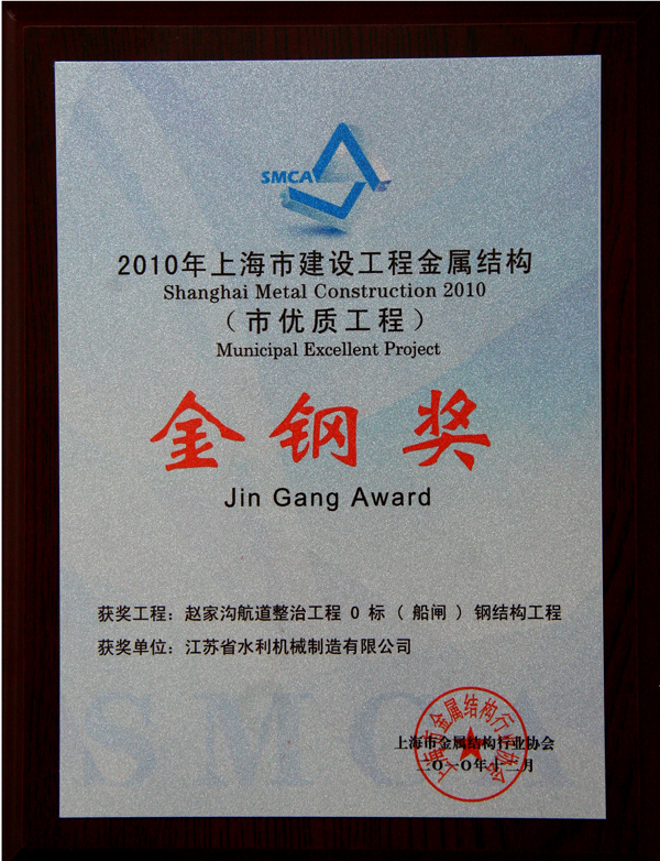 上海市建设工程金属结构金钢奖(赵家沟航道整治工程(船闸)钢结构工程)