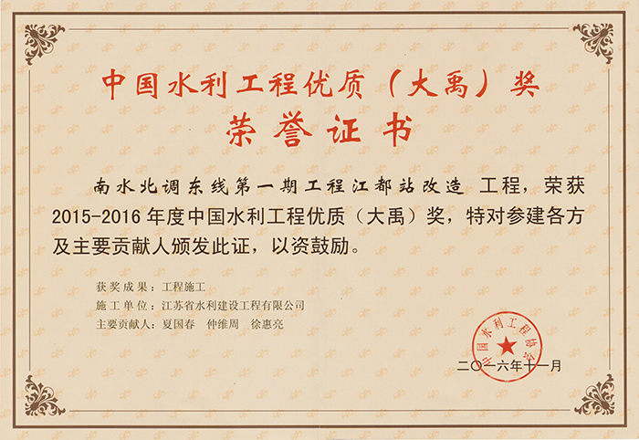 2015-2016年度中国水利工程优质(大禹)奖南水北调东线第一期工程解台站工程