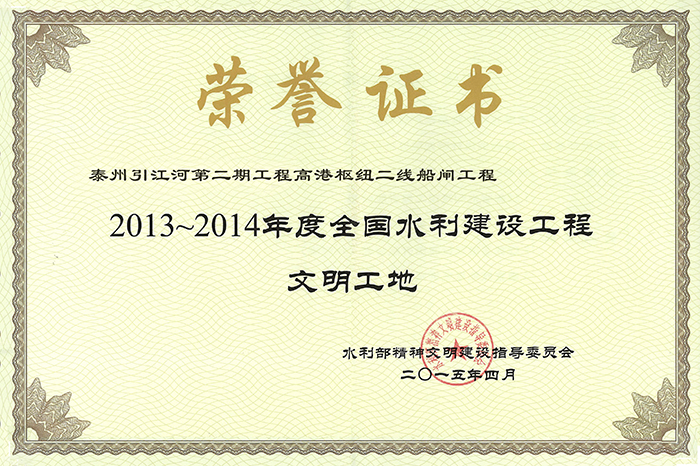 2013-2014年度全国水利建设工程文明工地(太浦闸)