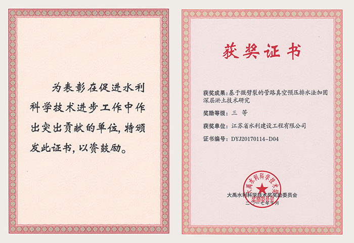 2017大禹水利科学技术奖(基于微劈裂的管路真空预压排水法加固深层淤土技术研究)
