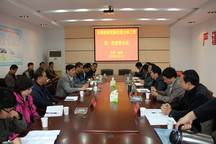 我公司朱学林董事长在会上表态,公司将和项目部一道,针对本工程的技术特点和施工难点,采取积极有效的措施,抓好各项施工管理工作,确保优质高效地建好石港泵站工程,为淮河入江水道工程建设再立新功。