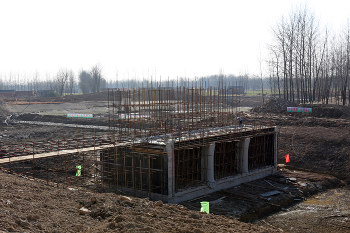 11月19日开始刘柴河北闸垫层混凝土施工,到目前已完成刘柴河北闸、南闸及淮柴闸闸室底板的封底,刘柴河南北闸底板、闸墩及交通桥钢筋绑扎和混凝土浇筑,淮柴闸底板钢筋绑扎和混凝土浇筑,累计完成混凝土2310m3,钢筋制作安装205吨。