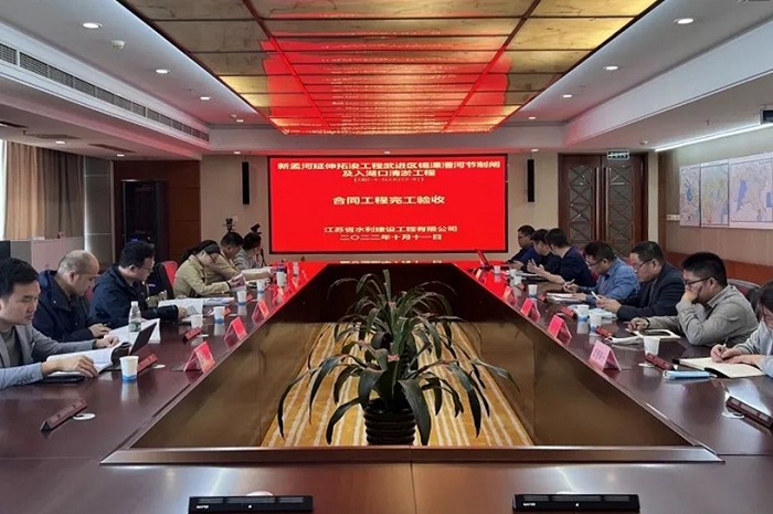 2022年10月11日,由常州分公司承建的新孟河锡溧漕河节制闸及入湖口清淤工程顺利通过完工验收,该工程是新孟河延伸拓浚工程完工的第一个建筑物工程。验收活动由常州市武进新孟河建管处组织,常州市河道湖泊管理处、常州市武进区水利局、常州市武进区河道湖泊管理处、常州市武进区枢纽管理中心及各参建单位的代表参加会议。
