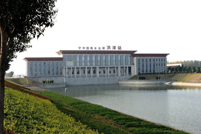 南水北调东线一期洪泽站工程是南水北调东线一期工程的第三级抽水泵站,工程的主要任务是抽水入洪泽湖,与淮阴泵站梯级联合运行,使入洪泽湖流量规模达到450立方米每秒,以向洪泽湖周边及以北地区供水,并结合宝应湖地区排涝。洪泽站设计流量150立方米每秒,装机5台套,其中备用一台,总装机容量17500kW。