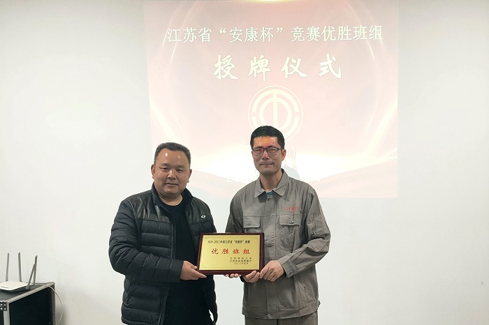 10月21日,扬州市总工会洪慧娟副主席带队到水机公司为获得2020—2021年度省“安康杯”竞赛优胜班组的起重班组授牌。公司工会主席李娟、水机公司相关负责人以及起重班组部分工作人员参加授牌仪式。