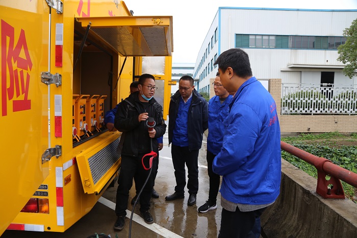 盛家宝一行听取了公司防汛设备仓储基地和防汛抢险队伍建设情况,实地指导、观摩移动排水车启动运行。经过测试,移动排水车和潜水泵均达到交付使用标准。省应急厅本次为公司配备移动排水车2台、便携式潜水泵6台,后续将陆续配备多功能应急充电方舱和移动电源箱,提升公司的防汛应急能力。