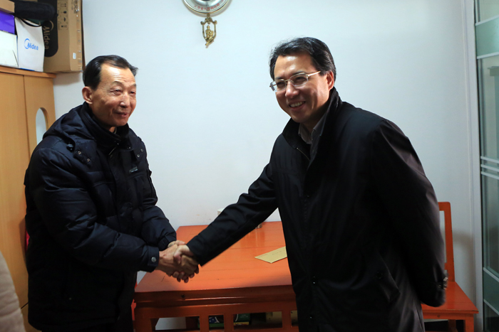 韩全林一行在夏国春总经理的陪同下,来到公司退休老领导朱道洪和省劳模丁开德家中,详细了解他们的生活和身体情况,对老劳模、老同志为江苏水利作出的贡献表示感谢。他叮嘱老同志们要注意保健,加强锻炼,平和乐观地安度晚年。