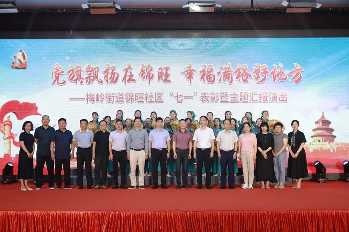 6月26日下午,锦旺社区党委举办“党旗飘扬在锦旺 幸福满格好地方”——“七一”表彰暨主题汇报演出。公司党委副书记、纪委书记姚立宏与梅岭街道党工委书记李家奎、社区党员代表王桂云共同为“锦旺号”服务专列启动按钮。
