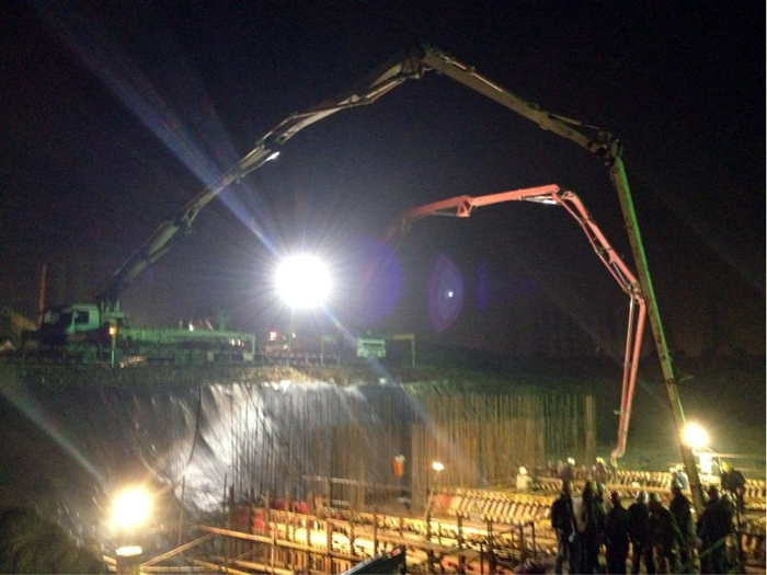 在大家的共同努力下,26日下午2时至 27日上午10时,顺利完成了上闸首底板1390方混凝土浇筑;紧接着从29日下午2时至30日上午10时,顺利完成了下闸首底板1500方混凝土浇筑。此次浇筑取得了圆满成功,公司大型设备的资源优势和内部联合作战的集团优势得到了充分发挥。而设备租赁分公司员工严谨认真的态度和积极、周到的服务也得到了项目部的认可。