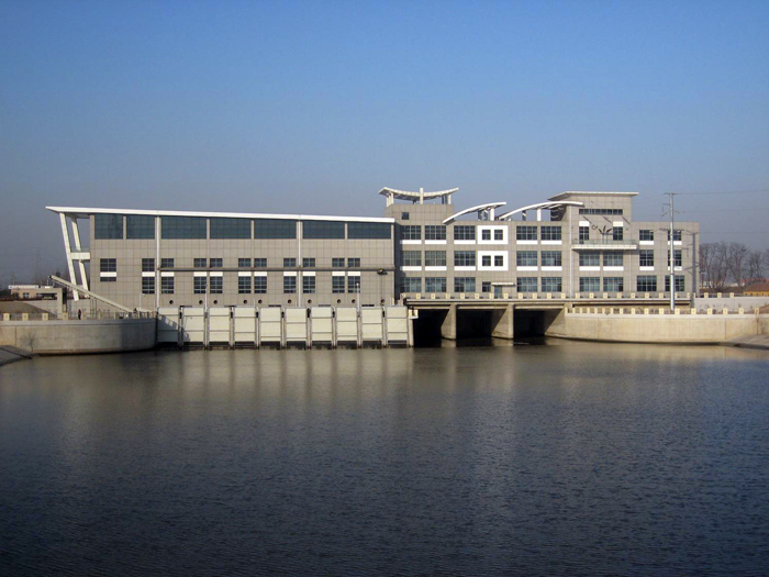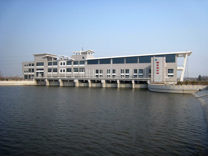 泵站设计流量125 m3/s,设计扬程5.84m,安装5台套2900ZLQ32-6型立式轴流泵(含备机1台),水泵叶轮直径2900mm,配TL2800-40/3250型同步电动机,单机设计流量31.5 m3/s,单机功率2800kW,总装机容量14000kW