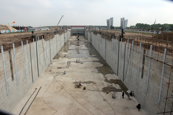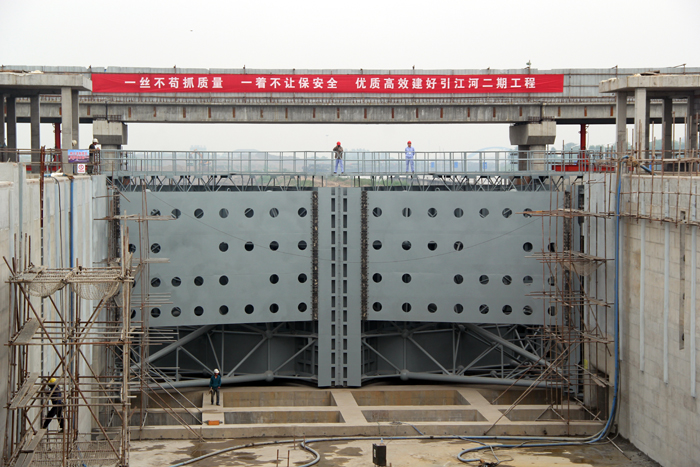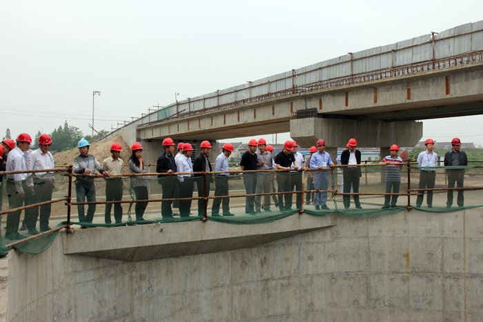 下午,观摩团来到了泰州引江河二期工程,在江苏省水利厅党组成员、省水利建设局局长朱海生、引江河二期工程建设局局长马志华陪同下参观了由我公司施工的河道工程一标和二线船闸工程,公司董事长夏国春和副总经理、二线船闸项目经理顾明如、机械化分公司经理、河道一标项目经理葛年平陪同参观并介绍了工程施工情况。随后,观摩团在项目部会议室,观看了引江河二期工程宣传片,听取了马志华对引江河二期工程施工管理情况介绍和顾明如对二线船闸工程进度、施工难点、技术创新和质量管理等情况的介绍。