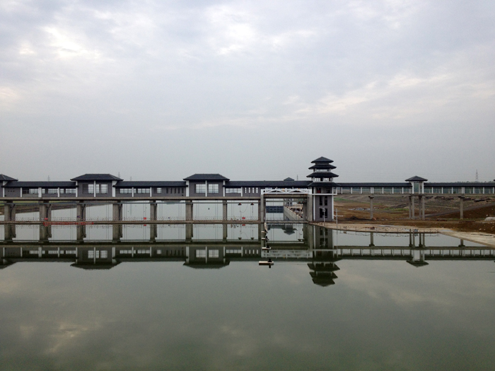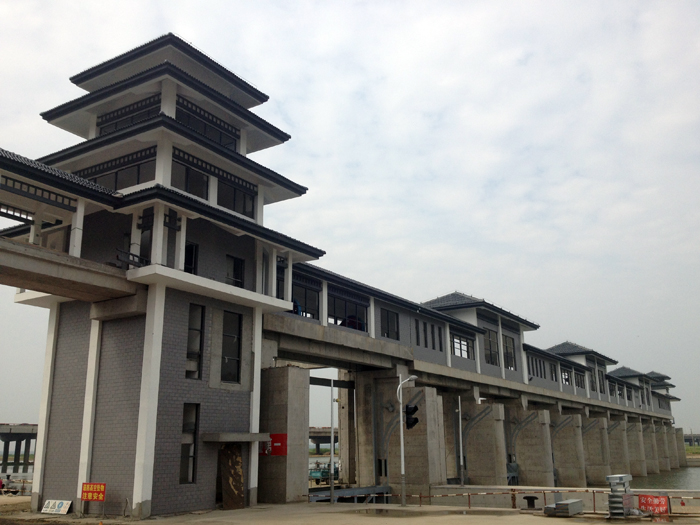17日上午,各位代表来到我公司承建的淮河入江水道整治工程东西偏泓闸工程现场。项目经理陈兴奎陪同观摩团实地查看了工程质量。目前该工程已基本建成投入运行,工程质量优良,线条流畅,造型美观,给代表们留下了深刻的印象。