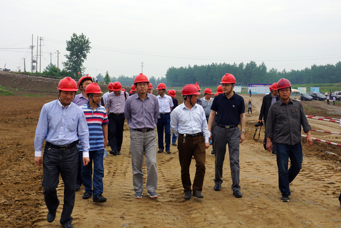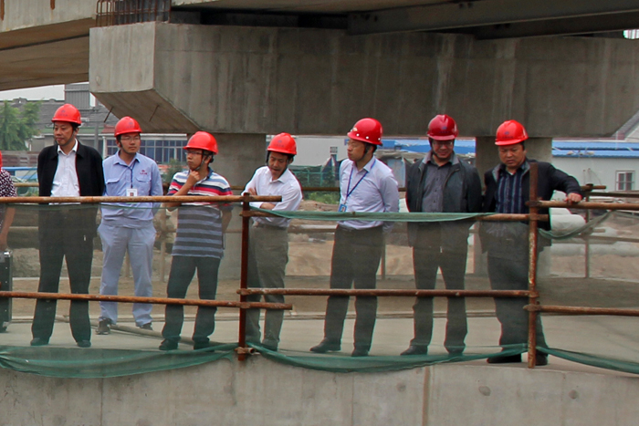 其后,代表们来到我公司承建的淮河入江水道整治工程石港泵站。我公司副总经理、该工程项目经理杨斌介绍了工程进展情况。我公司项目部于2013年11月进场施工, 2014年1月3日完成泵站底板封底,春节前完成底板混凝土浇筑,3月底完成进水流道浇筑,目前正在进行驼峰、翼墙、清污机桥施工作业。代表们对工程紧凑的现场布置、有序的施工组织表示了肯定和赞赏。