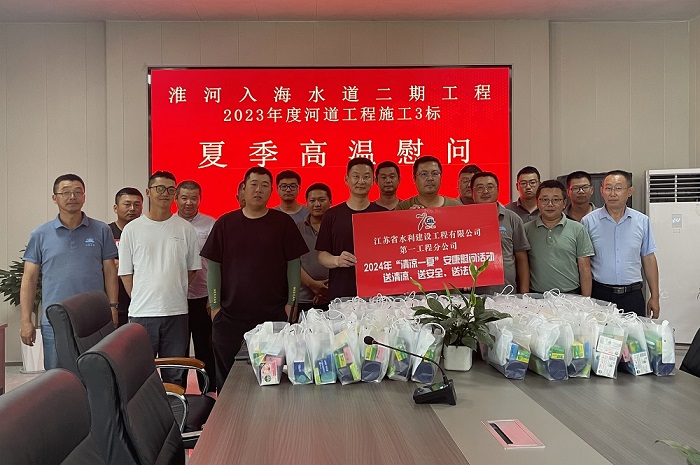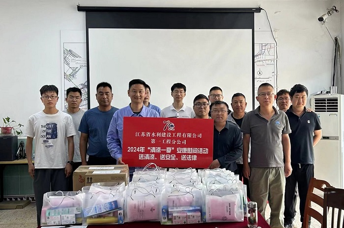 近日,一分公司工会到阜宁腰闸拆建工程、淮河入海水道二期工程2023年度河道工程施工3标等项目开展2024年“清凉一夏”安康慰问活动。