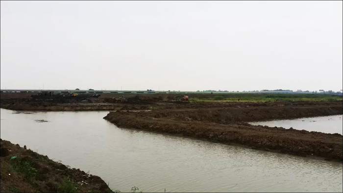 该标段是淮河入江水道河道疏浚切滩的关键标段之一,开挖范围位于杨庄河以东、高邮控制线以北,河道桩号30+55033+550,切滩面积6448亩,切滩总土方量约465.17万方。项目部于20139月进场后,立即着手组织船舶、机械进场开展施工筹备工作,于春节前后打通了切滩区与弃土区之间9公里长的主航道,开挖航道土方57万方。其后项目部投入了80余艘施工船舶和近百台陆上土方施工机械、车辆开展切滩土方施工。至发稿时已有90余万方土从切滩区源源不断地开挖运输至弃土区。