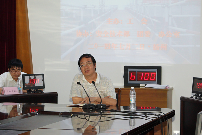 7月2日下午2时,由公司工会主办,安全技术部、团委、办公室协办的2014年 “安康杯”安全生产知识竞赛拉开序幕,来自各分(子)公司的10支代表队参加了活动。公司安全生产管理专家许国安、章根兴、邓新杰执裁本次比赛。公司领导夏国春、时爱祥、顾明如、姜启生、黄祥圣、陈勤等现场观看了比赛。