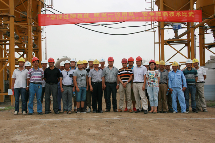 本次技术比武大赛是在公司安全生产月安康杯安全生产竞赛活动深入开展之际,分公司开展的职工岗位练兵和技能比武活动。比赛分为拌合楼故障排除团体对抗赛、混凝土罐车驾驶技术比赛以及安全知识竞赛。上午9时,技能比武大赛举行了开幕式。公司党委副书记、工会主席姜启生在开幕式讲话中指出,设备租赁分公司是管理和使用公司大型混凝土设备的专业分公司,本次技能比武是所有参赛选手个人综合素质和技能水平的演绎,是江苏水建大型混凝土设备操作技术能力的全方位展现,更是公司重视员工技能素质提高,推进人才选拔、培养的一次检验,对全面提升员工队伍业务能力,促进公司可持续发展起着重要的作用。参加技能比武的各位选手要严格遵守比赛规则,文明比武,赛出风格,赛出水平,通过技能比武展现水建人求实上进,勇争一流的精神风貌,夺得技能比武和精神文明的双丰收。