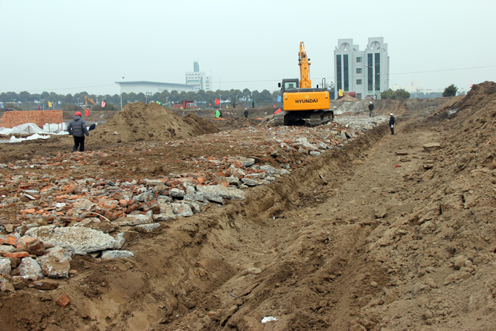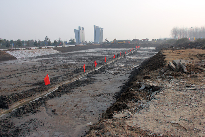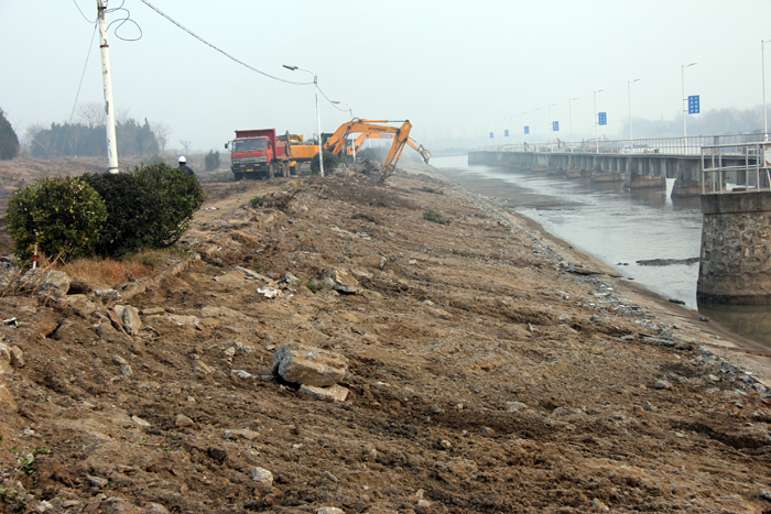 泰州引江河第二期工程是江苏省重点水利工程,20121218日举行了开工动员会。我公司承建的船闸工程自开工后就进入了紧张的临时设施筹建和土方施工中。项目部员工利用现有条件,边筹建临时设施,边进行土方开挖和上下游河道清理。目前已完成土方开挖3m3,下游清淤5m3;搭设办公、宿舍用房70余间;填筑施工道路200余米;拌和楼基础和砂石料场已基本浇筑完成;高压输电架设基本到位。