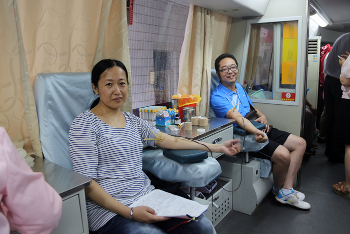 8月8日上午,一次以对口支援“8月2日昆山特大爆炸案伤员”的义务献血活动在公司举行。公司班子成员、劳模、党员、团员、志愿者、普通员工近50人参加献血活动。有43人成功献血14900毫升。本次捐献的血液将于当日下午送达昆山,用于伤员的治疗。
