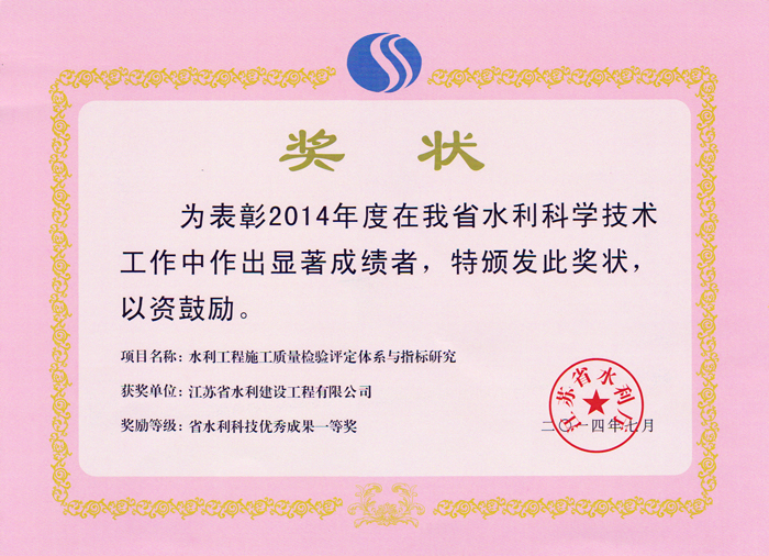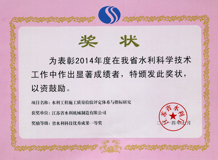 近期,公司和省水机公司参加的“水利工程施工质量检验评定体系与指标研究”项目获“省水利科技优秀成果一等奖”,公司机安分公司王杰良、省水机公司徐龙等同志分别参加了相关部分的研究和编制。
