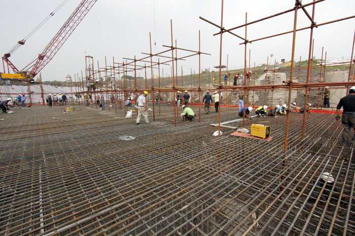 江苏水建人的精神在此刻得到了充分的展示。项目部没有丝毫气馁,迎难而上。增加人员、设备资源投入,调整优化现场作业方案,细排工期到每一天的每一个时点。大家成天成夜地泡在工地上组织施工作业,无论是大雨如注,还是夜幕降临,工地上总会见到他们的身影。老钢筋队长黄伯健同志,跟班指导工人绑扎钢筋,连续几天通宵作业,3天就完成了160吨的钢筋施工任务,而黄伯健同志也累倒了。新来的几个大学生,尽管刚刚走上工作岗位,但小伙子们肯学肯钻肯吃苦,很快的适应了高强度的工地生活,进步很大。