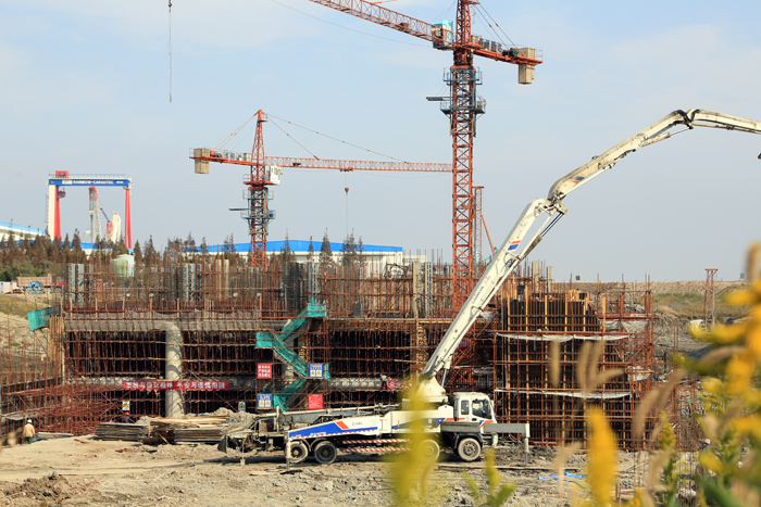 七浦塘拓浚整治江边枢纽工程是七浦塘与长江交汇口的重要口门控制性建筑物,由已建节制闸、船闸和增建泵站三部分组成。泵站于2014310正式开工建设,目前已完成泵站底板、进出水流道及部分翼墙底板施工,进入泵站站身主体和28个翼墙的全面施工阶段。