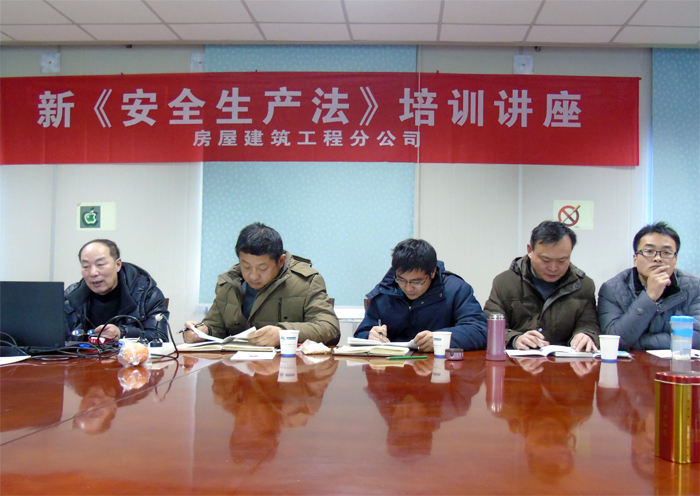 2014年12月31日下午,房屋建筑工程分公司组织管理、技术人员和部分现场兼职安全管理员系统学习了新《安全生产法》。公司副总工程师、安技部主任章根兴针对《安全生产法》修改前后具体内容和要求的变化,进行详细地讲解,对相关条款作了重点说明,并穿插了相关案例的讲解。