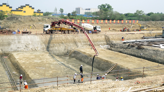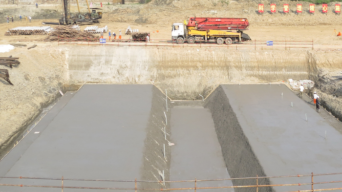 新沟河遥观南枢纽顺利完成泵站底板封底
