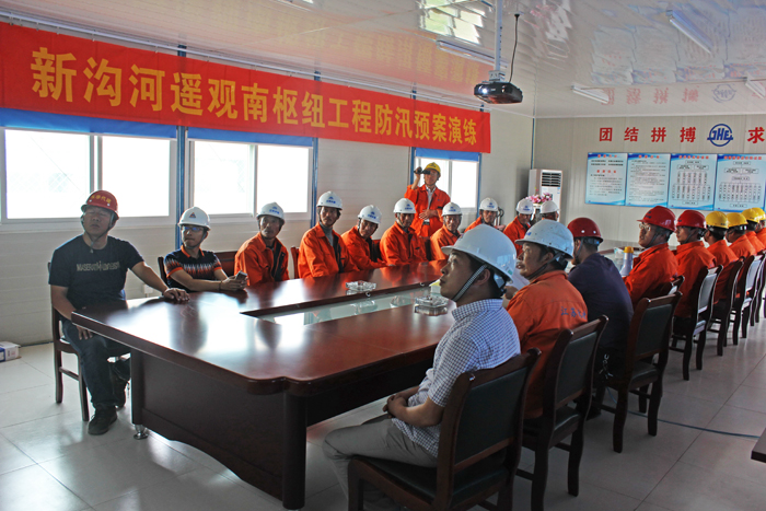 522下午4时,新沟河遥观南枢纽项目部举行了防汛应急救援演练活动。演练队伍以项目经理部人员为主,建设、监理单位的有关同志观摩了演练活动。