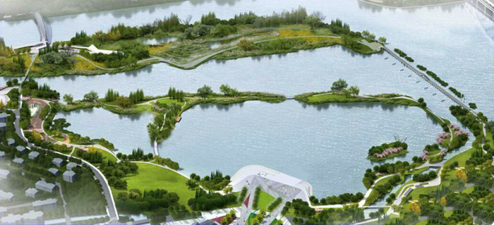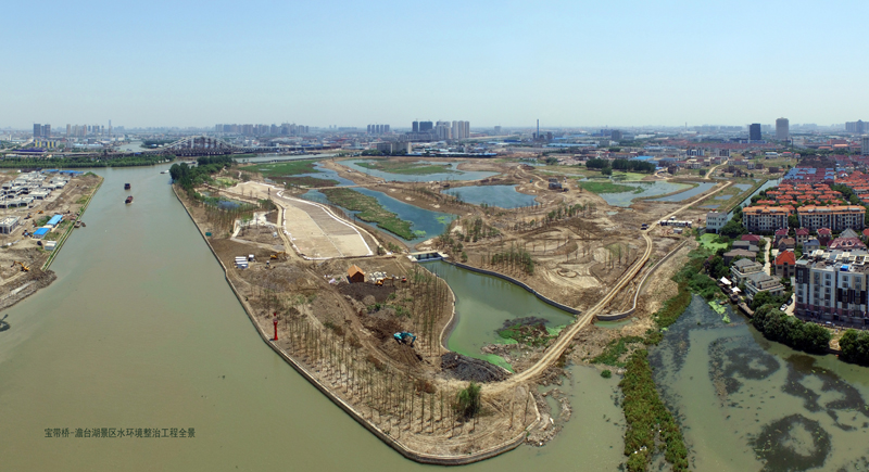 宝带桥—澹台湖景区位于苏州古城区东南,紧邻京杭大运河,依畔千年古桥—宝带桥。景区占地44万平方米,规划整治水域面积22万平方米。工程建设内容包含水工和水质净化两部分。水工部分包括:土方工程(河湖清淤、场地回填)、构造物(钢坝闸一座、溢流坝两座、拦污消浪网、驳岸挡墙等);水质净化部分包括:补水水源人工湿地净化系统、增氧推流系统、生态滤床雨水净化系统、澹台湖水体生态重建工程—生物巢穴构建工程。