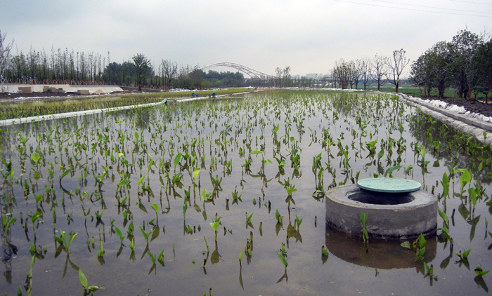 澹台湖湖岸局部区域设计生态滤床,平面规划和高程与自然地形充分结合,保证雨水在生态滤床中重力流排水通畅,避免对坡岸的冲浊。
